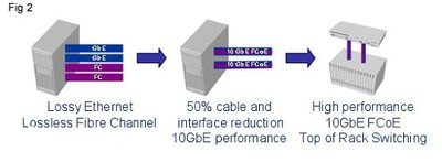 Figure 1 illustrates the size of the problem in a big data centre. The solution lies in 10Gigabit Ethernet - fast enough to serve not only I/O to the LAN but also SAN (storage area network) and IPC (inter processor communication) needs. Instead of four to eight gigabit cards in each server, just two 10 Gig cards offer full redundancy for availability plus extra room for expansion. Ethernet losses can be avoided using FCoE (Fibre Channel over Ethernet) that preserves the lossless character and management models of Fibre Channel. Another solution lies with new developments in ethernet. Just as Carrier Ethernet has extended the ethernet model to become a WAN solution, so the variously named Converged Enhanced Ethernet (CEE) or Data Centre Ethernet (DCE) is now available to serve SAN and IPC demands.